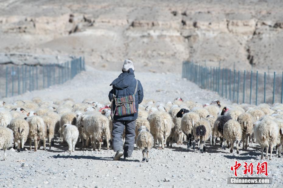 1月9日,西藏自治區(qū)定日縣曲洛鄉(xiāng)措昂村民眾在安置點附近放羊。當(dāng)日,位于西藏自治區(qū)定日縣曲洛鄉(xiāng)措昂村安置點,西藏各級救援人員和愛心企業(yè)不斷轉(zhuǎn)運(yùn)、發(fā)放生活物資、搭建活動板房、全力保障受災(zāi)民眾的飲食供應(yīng)等,保障受災(zāi)民眾基本生活。中新社記者 貢嘎來松 攝