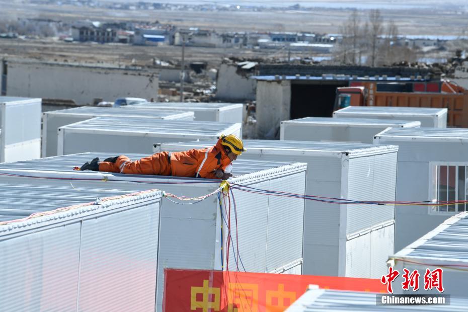 1月7日9時5分,西藏自治區(qū)日喀則市定日縣發(fā)生6.8級地震,震源深度10公里。災(zāi)情就是命令,當(dāng)?shù)卣推髽I(yè)迅速行動,目前災(zāi)區(qū)多個鄉(xiāng)村都在加緊進(jìn)行保溫板房建設(shè),只為讓受災(zāi)民眾早日擁有“安心巢”。據(jù)了解,每間板房有18平方米,可容納4到5人,板房設(shè)有折疊床、桌子、爐子等,并保障民眾用電需求,讓他們更好地度過冬天。圖為1月11日,西藏日喀則市定日縣曲洛鄉(xiāng)措昂村安置點(diǎn),中國交建西藏指揮部抗震救災(zāi)前線工人在為板房搭設(shè)電路。中新社記者 貢嘎來松 攝