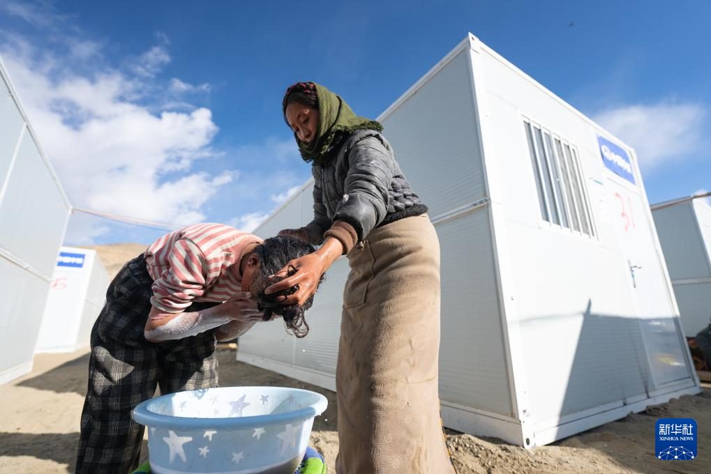 在定日縣長所鄉(xiāng)嘎旦村,一位婦女在幫女兒洗頭(1月13日攝)。新華社記者 丁增尼達 攝