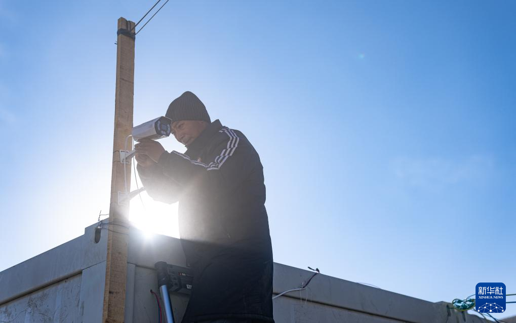 在定日縣長所鄉(xiāng)古榮村,工作人員在安裝監(jiān)控(1月13日攝)。新華社記者 丁增尼達 攝