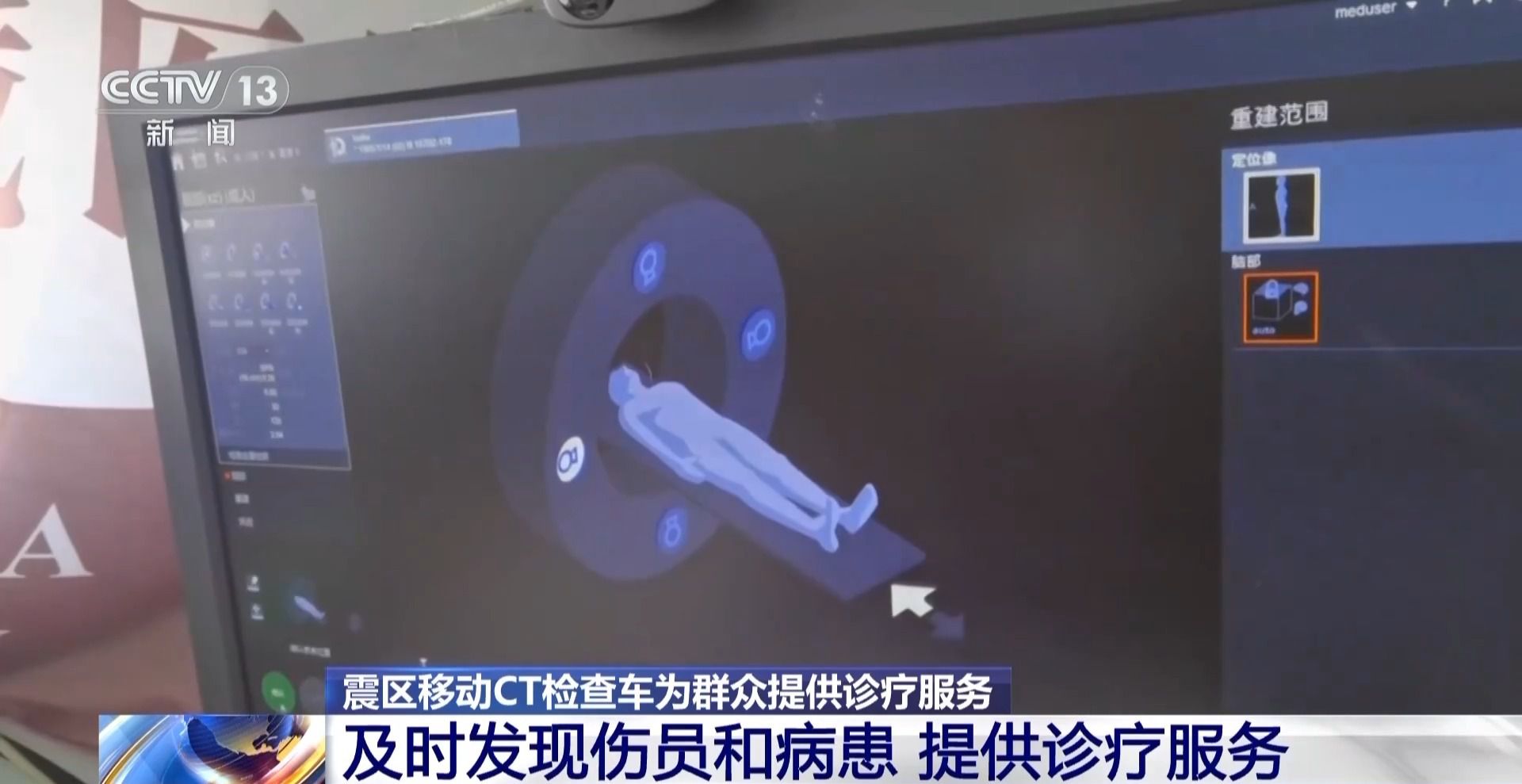 這個移動CT檢查車開到這里的目的是什么?就是醫(yī)護人員要把這些最先進的裝備拿到基層來,讓這些受災的群眾能及時地進行檢查、發(fā)現(xiàn)病患。