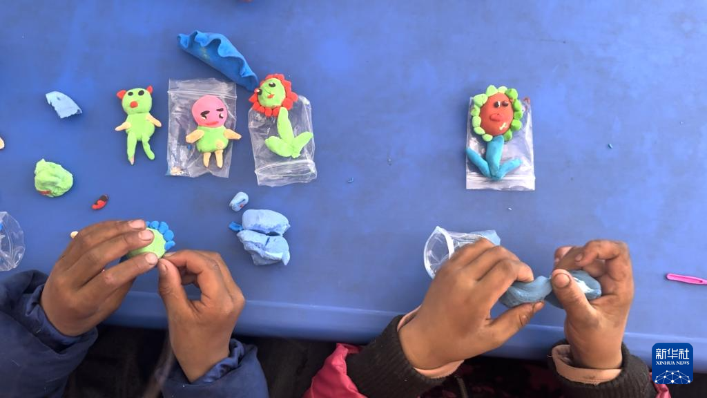 1月13日中午,在定日縣曲洛鄉(xiāng)措娃村安置點的兒童友好空間,孩子們在社工指導(dǎo)下捏塑超輕黏土。新華社記者索朗德吉 攝