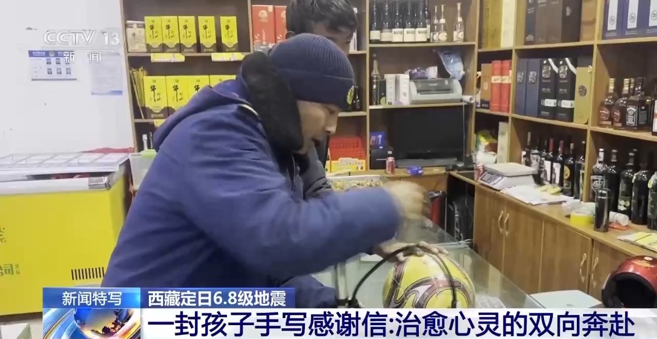 曲洛鄉(xiāng)野江村安置點內(nèi)有近一百名孩子。10日晚,一群小朋友把一個踩扁的易拉罐踢著玩,還拉著忙完的消防員一起切磋“球”技。這個視頻被日喀則市森林消防大隊的消防員隨手記錄下來并發(fā)在工作群里,一名消防員看到后,當晚驅(qū)車到縣城買了一個足球。