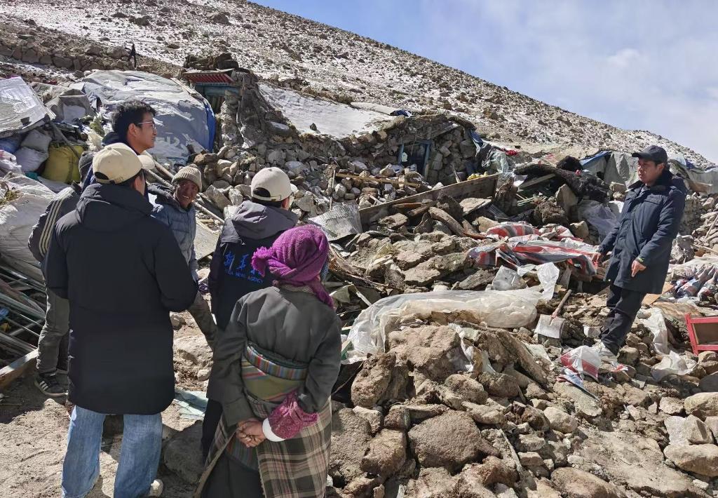 這次是政府工作人員第二次來(lái)到該村,核實(shí)災(zāi)情。珠桑一行人一到村里,開始查看房屋和羊圈倒塌廢墟,詢問牲畜傷亡和物資受災(zāi)情況。