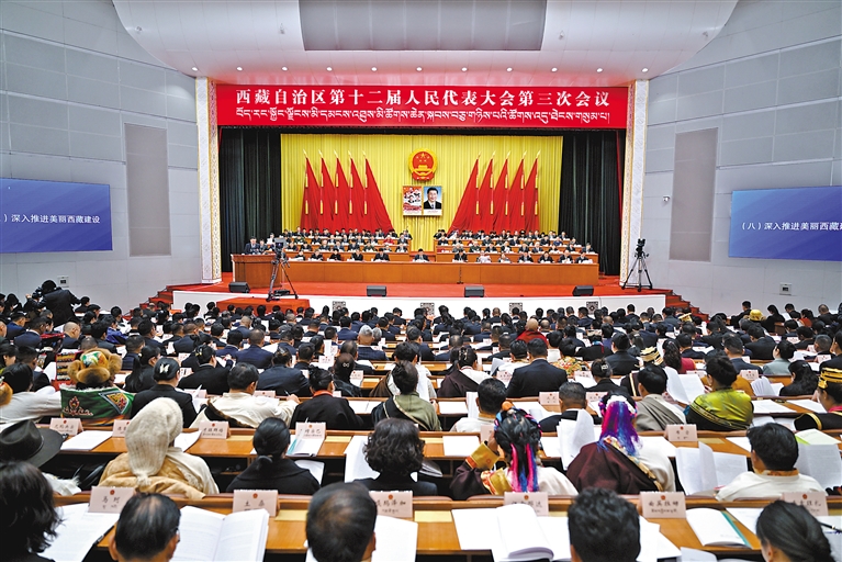 自治區(qū)十二屆人大三次會(huì)議開幕會(huì)現(xiàn)場(chǎng)。記者 旦增西旦 攝