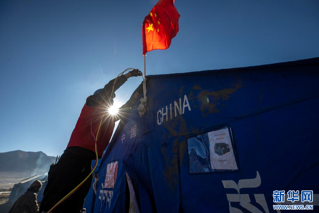 1月9日,中鐵二十局的救援人員在定日縣長(zhǎng)所鄉(xiāng)森嘎村冒著風(fēng)沙搭建板房。新華社記者 沈伯韓 攝