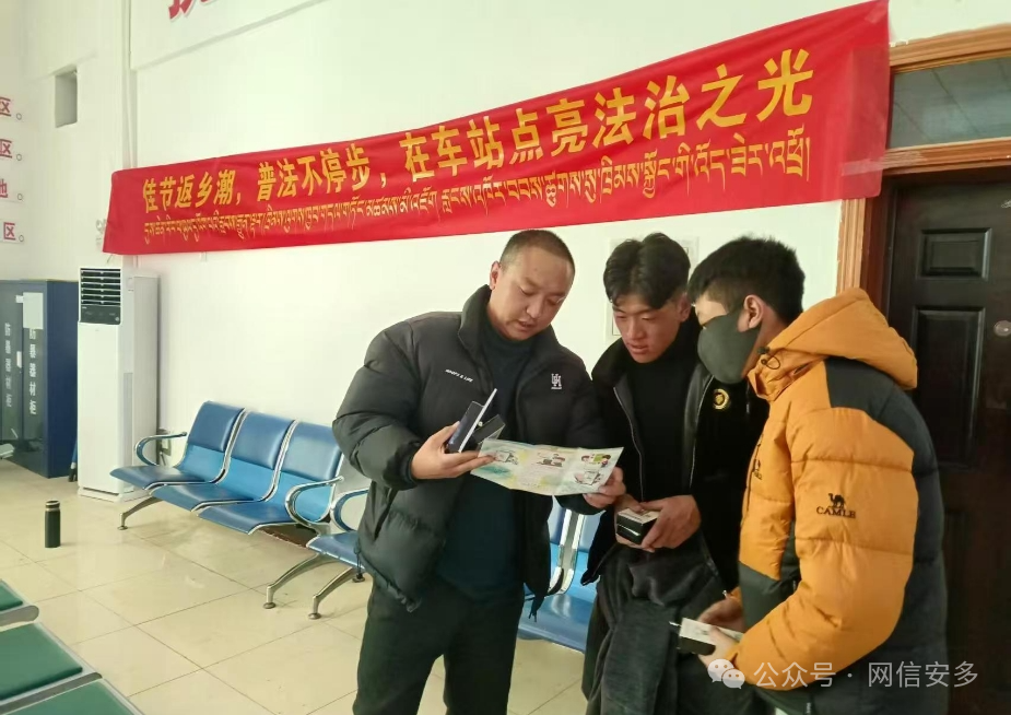 2025年1月23日,在蛇年春節(jié)返鄉(xiāng)潮的高峰,安多縣普法辦聯(lián)合縣禁毒辦在安多火車站開展以“佳節(jié)返鄉(xiāng)潮,普法不停步,在車站點亮法治之光”為主題的宣傳活動,為歸心似箭的旅客們送上了一份特殊的“法律年貨”。