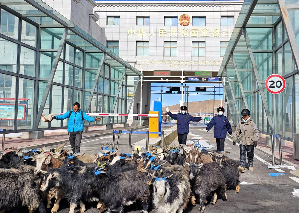 海關(guān)關(guān)員監(jiān)管驗(yàn)放出口活羊。次旺久美攝