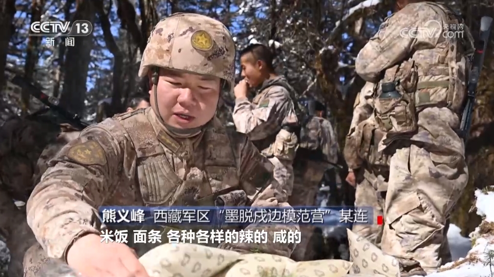 西藏軍區(qū)“墨脫戍邊模范營”某連熊義峰:“我們現(xiàn)在單兵自熱食品品種非常豐富,米飯、面條,各種各樣的,辣的、咸的,能夠滿足廣大官兵的口味需求。然后它的操作也非常簡單,就是加點(diǎn)水,操作非常便捷,熟得也很快,第三個(gè),它這個(gè)熱量提供非常充足。因?yàn)槲覀冊(cè)谘策壜飞弦?jīng)常爬山,體力消耗很大,所以需要快速補(bǔ)充能量。”