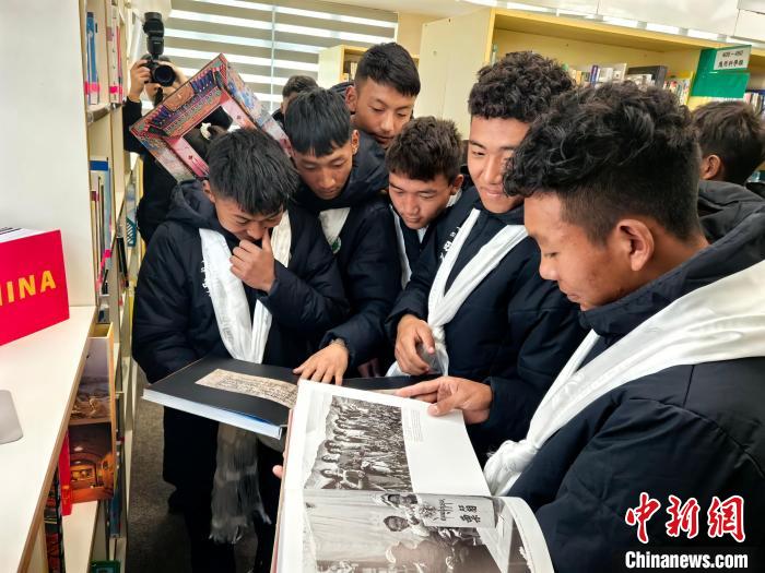 2月20日,參加“跨越山海 以球會友”藏港青少年足球交流活動(dòng)的西藏自治區(qū)青少年在香港中華基金會中學(xué)圖書館翻閱介紹西藏的圖冊。 中新社記者 劉大煒 攝