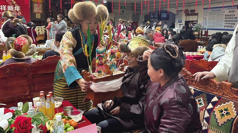 拉薩市社會(huì)福利院工作人員白央告訴記者,藏歷新年前一周,她們就為老人們洗澡、修剪指甲,對(duì)福利院進(jìn)行全面大掃除。為營(yíng)造節(jié)日氛圍,還提前為老人裝扮居住環(huán)境,掛上紅燈籠,擺上切瑪盒等?!斑@是我在福利院工作的第二年。藏歷新年雖不能陪伴在父母身邊,但與老人們一同過(guò)年,讓我深感幸福且意義重大。”