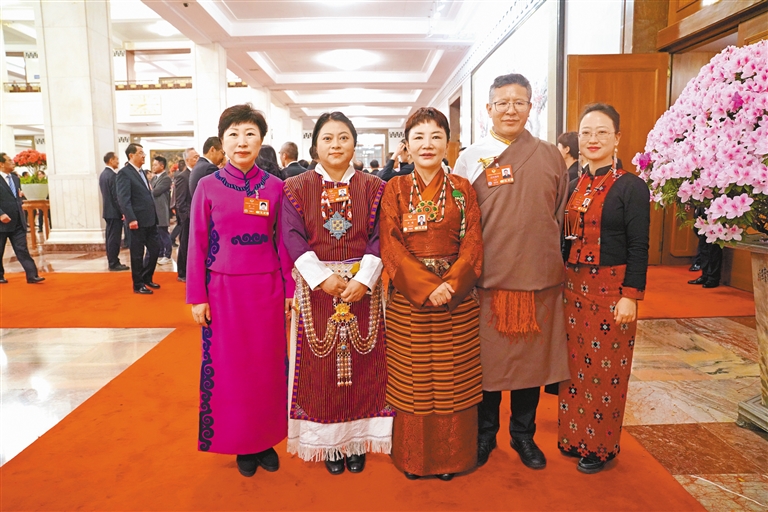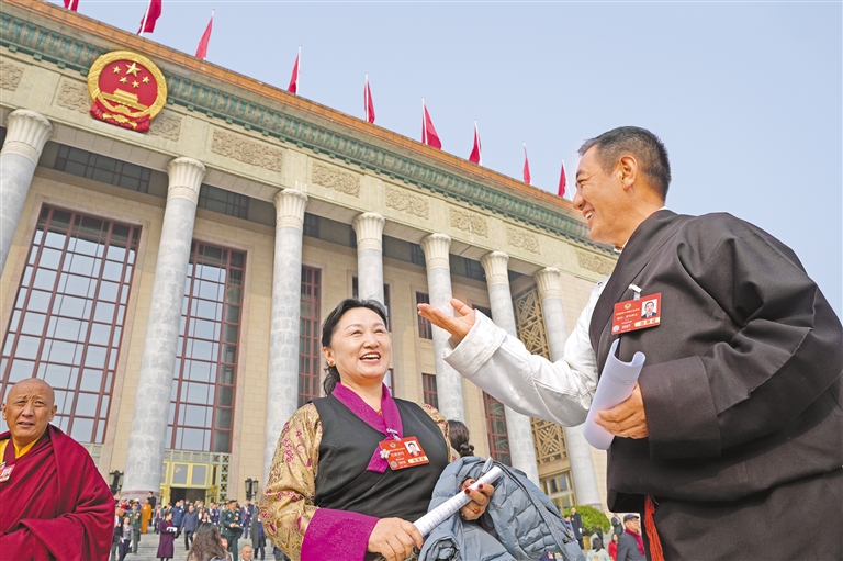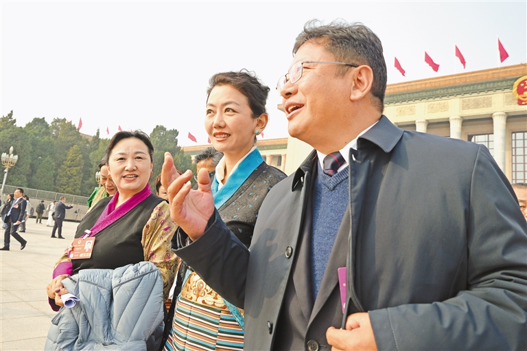 圖為住藏全國(guó)政協(xié)委員等參會(huì)人員在人民大會(huì)堂前合影留念。記者 旦增平措 次旦央吉 攝