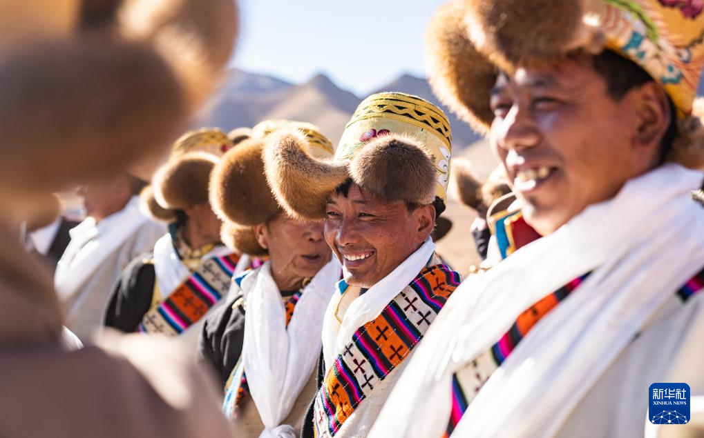 3月16日,拉孜縣曲下鎮(zhèn)土林村村民身著節(jié)日盛裝參加春耕典禮。新華社記者 姜帆 攝
