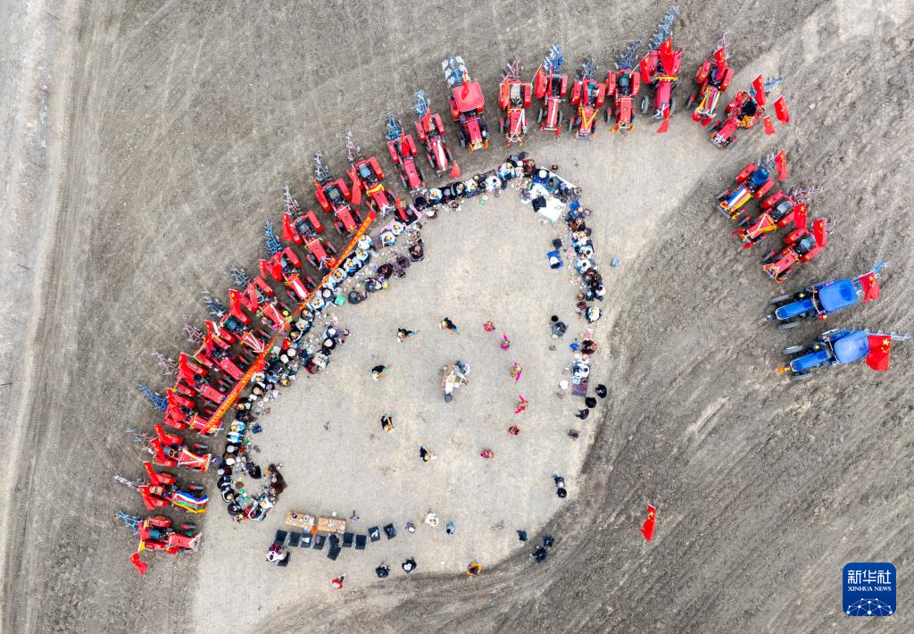 西藏拉孜縣曲下鎮(zhèn)土林村春耕典禮現(xiàn)場(3月16日攝,無人機照片)。新華社記者 姜帆 攝