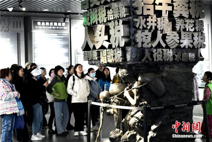 2024年3月28日,西藏迎來百萬農(nóng)奴解放65周年紀念日,民眾來到位于拉薩市的西藏百萬農(nóng)奴解放紀念館參觀。中新社記者 李林 攝