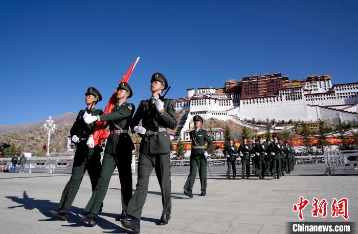 28日10時(shí)整,“3·28”西藏百萬農(nóng)奴解放66周年“升國旗、唱國歌”儀式在布達(dá)拉宮廣場舉行。在湛藍(lán)晴空的映襯下,五星紅旗冉冉升起,200余名各族各界代表共同見證這一莊嚴(yán)時(shí)刻。