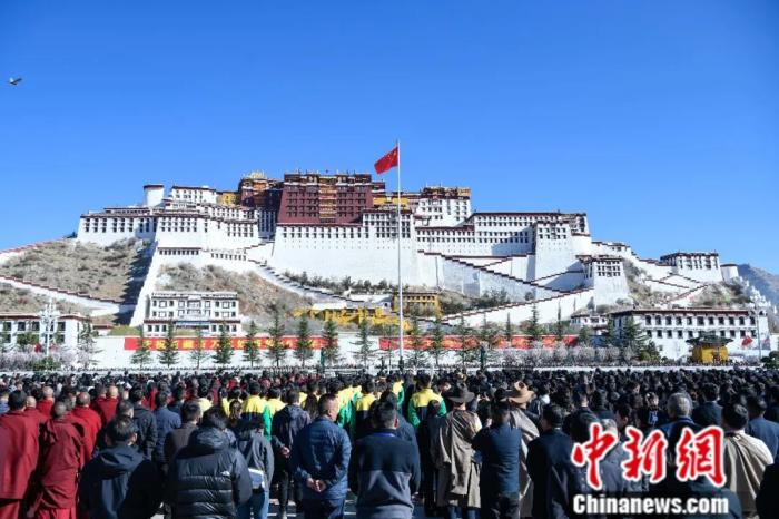 2025年3月28日,西藏各族各界人士聚集在拉薩布達(dá)拉宮廣場(chǎng),參加西藏百萬(wàn)農(nóng)奴解放66周年紀(jì)念活動(dòng)。中新社記者 貢嘎來(lái)松 攝
