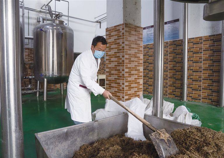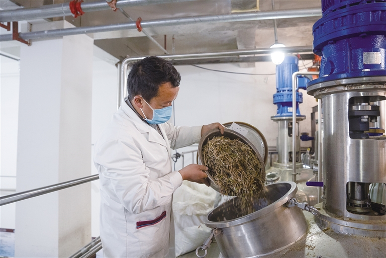 醫(yī)生將刺柏、櫻草杜鵑、藏麻黃、大籽蒿、水柏芝等五味藏藥倒入機(jī)器內(nèi)熬煮。