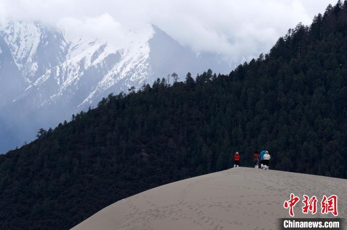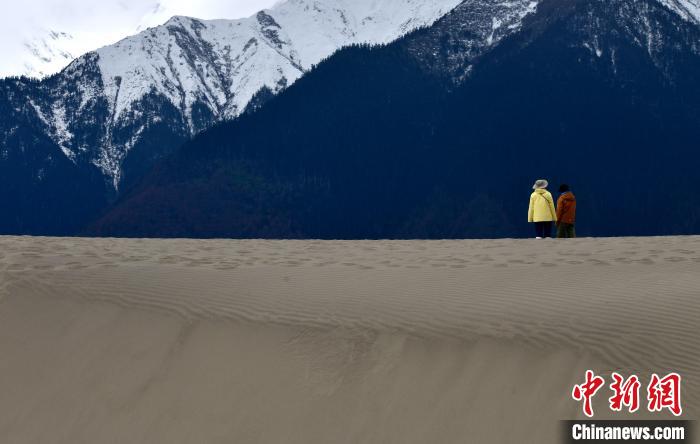 4月4日,游客在西藏米林市丹娘佛掌沙丘景點觀景。當(dāng)日是清明假期第一天,眾多游客在該地游玩,樂享美好春光。丹娘佛掌沙丘位于米林市丹娘鄉(xiāng),因沙丘倒影在雅魯藏布江中形成雙手合十的形狀,故被譽為佛掌沙丘。中新社記者 李林 攝