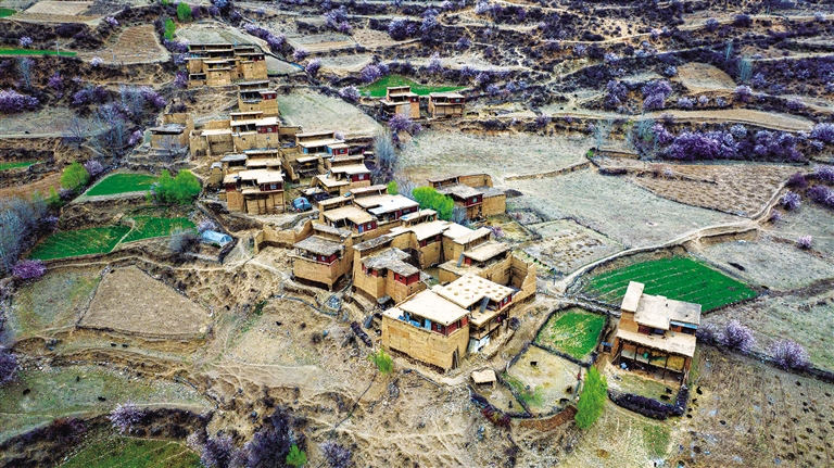 繼續(xù)向前出發(fā),山路崎嶇,我們迷路了,不過迷路是探訪秘境的前奏。當導(dǎo)航徹底失靈,翻越數(shù)座山后,一片粉色花海突然從山坳間涌出——我們到了敏都鄉(xiāng)馬覺村。金沙江在此劈開峽谷,海拔驟降,桃李綴滿枝頭。村民正修建羊圈,見我們風塵仆仆,笑著問我們要去哪兒。得知我們是過來采風的,村民便笑著指向山間:“那邊的桃花更好看,現(xiàn)在是桃花季!”