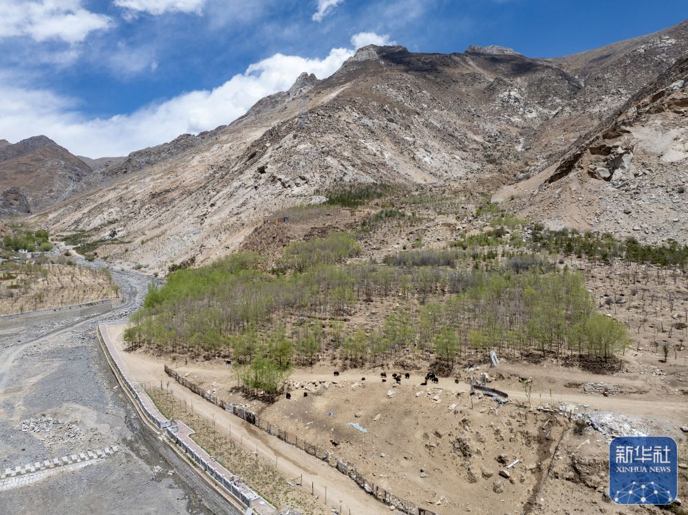 維巴村村民近年來在山上種植的樹林(無人機照片,4月24日攝)。