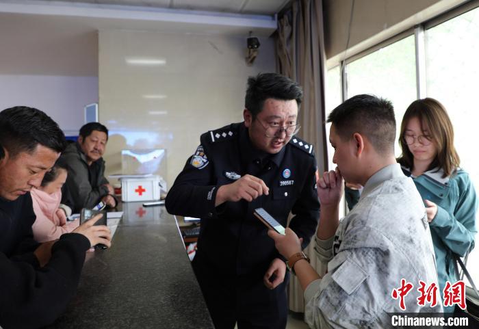 圖為西藏邊檢總站執(zhí)法調(diào)查支隊民警耐心為群眾解答疑問。沈鵬飛 攝