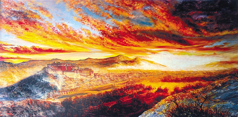 圖為瓷板畫作品《霞光中的布達拉宮》。