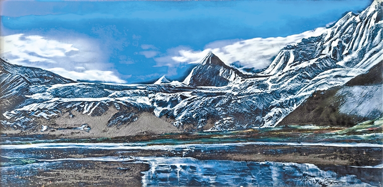 圖為瓷板畫作品《薩普雪山》。