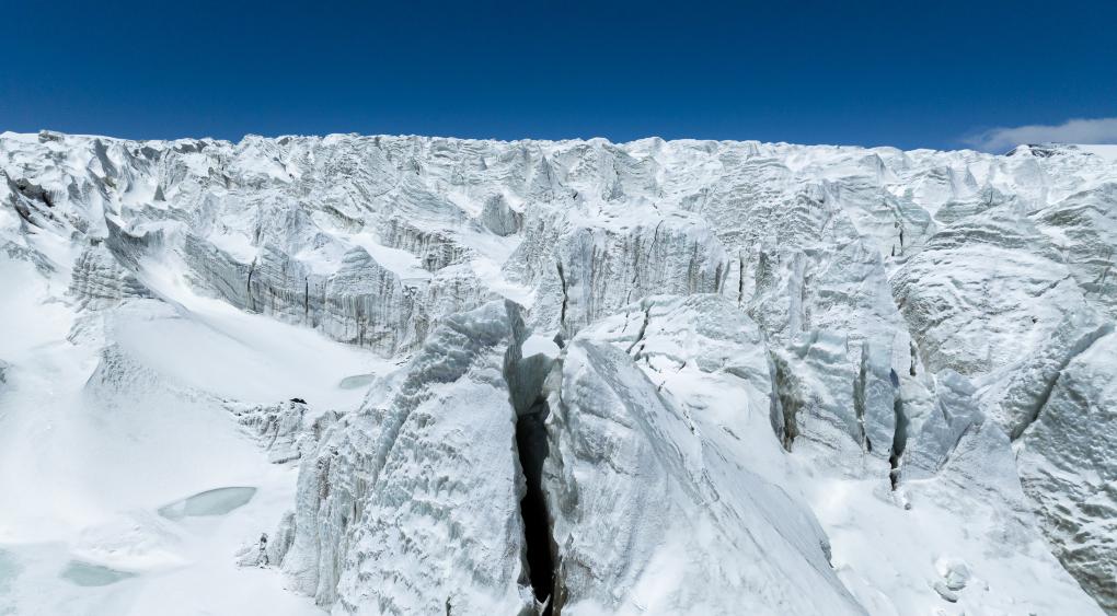 這是那曲市羌塘無人區(qū)內的藏色崗日冰川(無人機照片,2024年5月11日攝)。新華社記者 丁增尼達 攝