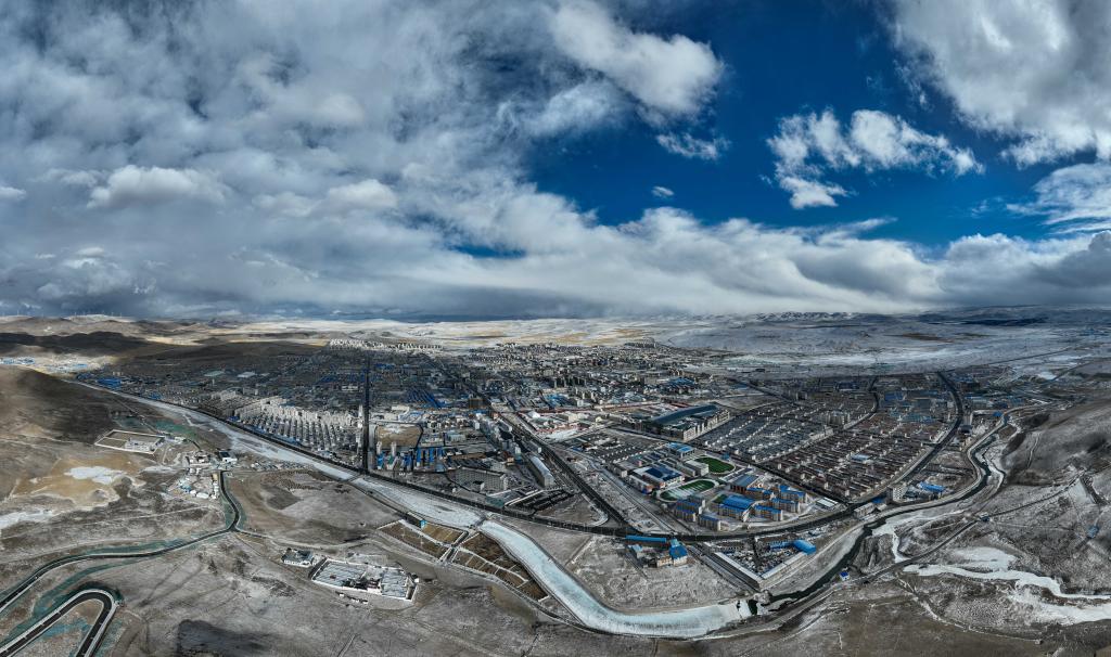 這是2月12日拍攝的那曲城區(qū)(無人機照片)。鳥瞰這座“云端之城”,一派蒼茫壯闊景象。新華社記者 晉美多吉 攝