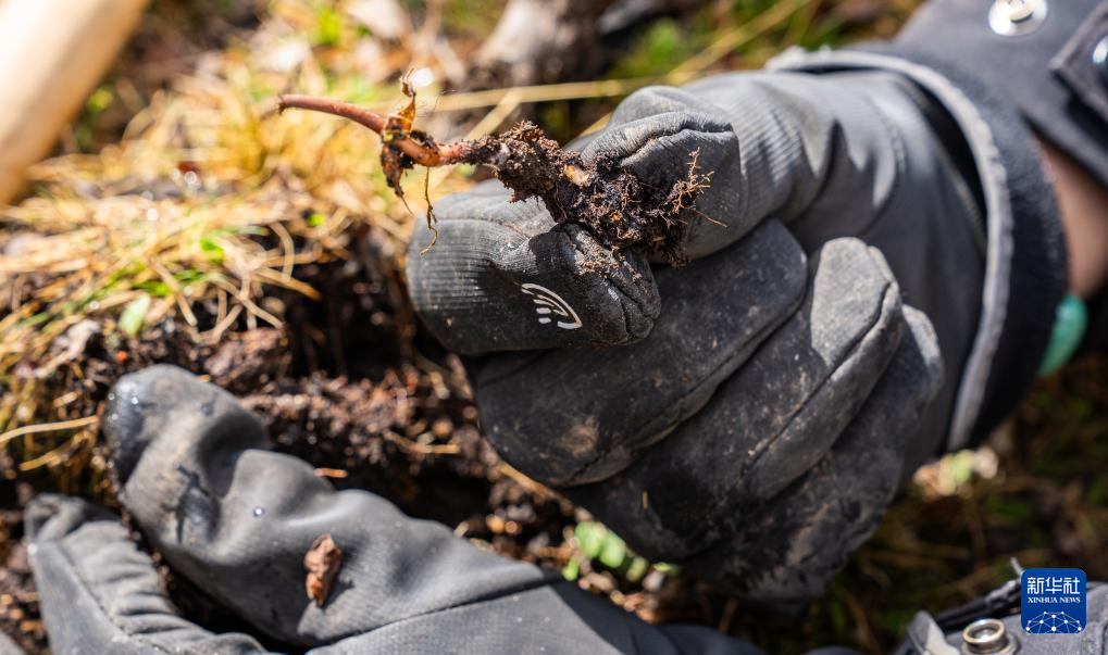 這是在那曲市索縣西昌鄉(xiāng)拍攝的剛采挖出的蟲(chóng)草(5月18日攝)。新華社記者 丁增尼達(dá) 攝
