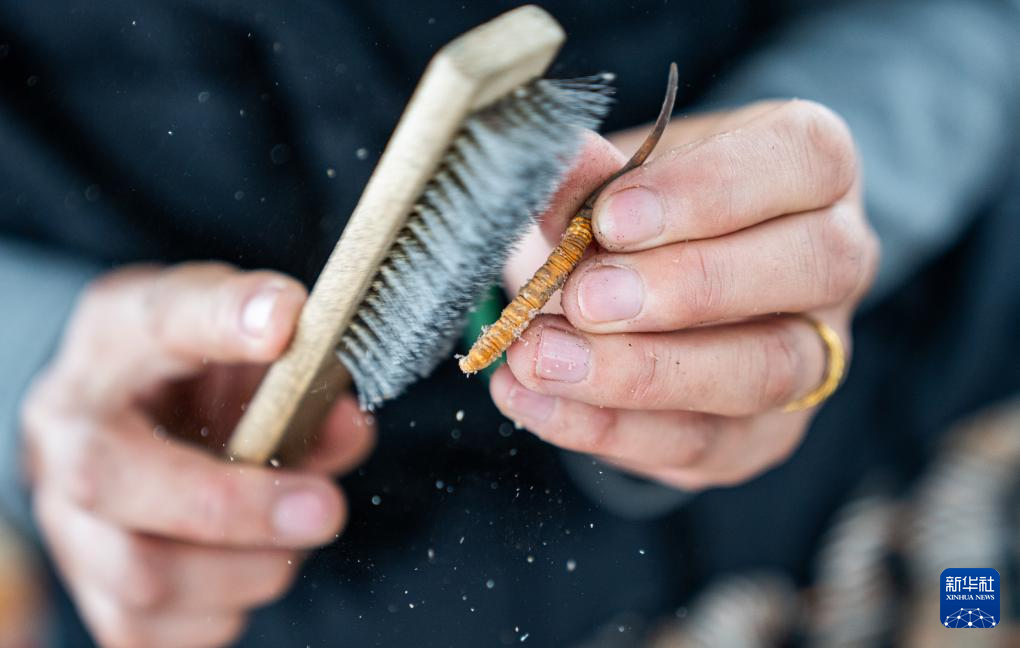 在那曲市索縣西昌鄉(xiāng),牧民白嘎在收納清理好的蟲(chóng)草(5月18日攝)。新華社記者 丁增尼達(dá) 攝