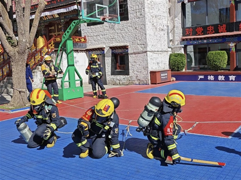 布達(dá)拉宮是一座“文化寶庫”,對(duì)于這座古老建筑而言,火災(zāi)無疑是最大的威脅。1984年,一個(gè)消防班入駐布達(dá)拉宮,2018年發(fā)展為消防救援站。該站肩負(fù)著布達(dá)拉宮主體建筑及周邊兩平方公里范圍內(nèi)的防火滅火、應(yīng)急救援、重大安保、為民助民等重任。
