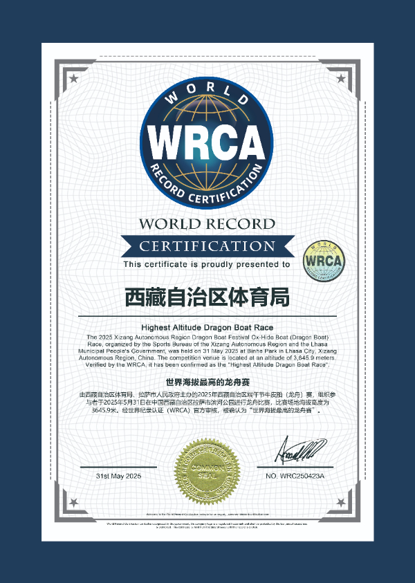 經(jīng)世界紀(jì)錄認證機構(gòu)(WRCA)認證為