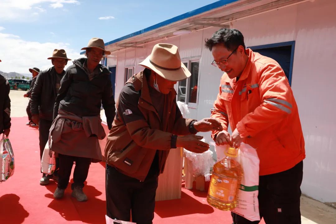 村民的熱情溫暖著施工人員。他們也想著回饋,端午節(jié),項(xiàng)目部工作人員送上米面油等生活必需品,表達(dá)對(duì)村民的感激與重建決心,真摯情感讓人心連心。