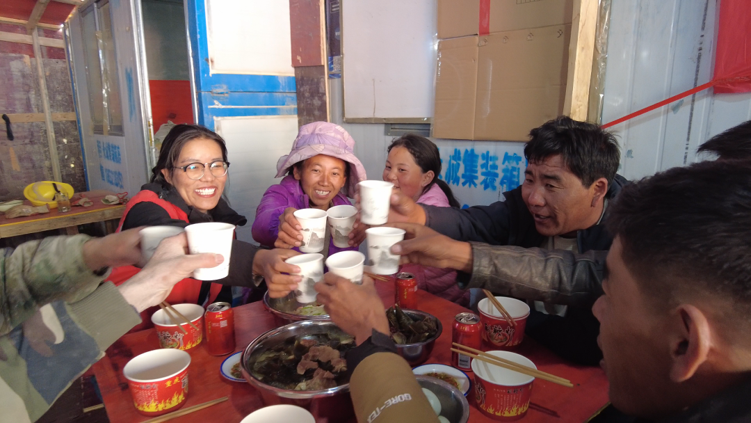端午前夕,這份情誼化作最美的畫面。5月29日,康孔村飄著酥油香與粽葉青。村民準(zhǔn)備了酥油茶、水果,施工隊(duì)也擺上四菜一湯和粽子。大家圍坐在一起,你給我倒酥油茶,我給你遞粽子,歡聲笑語(yǔ)不斷。