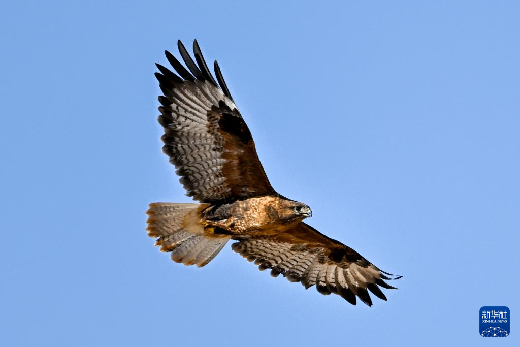 一只大鵟在羌塘草原展翅飛翔(6月8日攝)。新華社記者 劉金海 攝