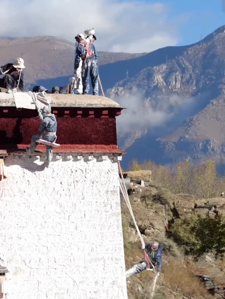 布達(dá)拉宮每年進行的墻體粉刷工程被稱作“甜蜜換裝”;維修科裁縫組負(fù)責(zé)布達(dá)拉宮毛氈、布料等物品的制作與修復(fù);維修科木工組負(fù)責(zé)布達(dá)拉宮木構(gòu)件的修繕、更換與保養(yǎng)。陽光下,雪域高原各族人民共同守護著這座世界之巔的文化遺產(chǎn)。