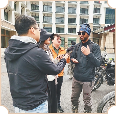 吉隆鎮(zhèn)上,記者偶遇一支由16輛摩托車、20余人組成的騎行車隊(duì)。領(lǐng)隊(duì)蘇詹·巴斯內(nèi)特來(lái)自加德滿都,此行他帶著16名澳大利亞游客,駕駛摩托車環(huán)行中尼兩國(guó)邊境地區(qū)?!坝?jì)劃行程11天,路程超過(guò)2500公里,將會(huì)途經(jīng)游客們最為期待的拉薩、珠穆朗瑪峰景區(qū)等地?!卑退箖?nèi)特說(shuō)。