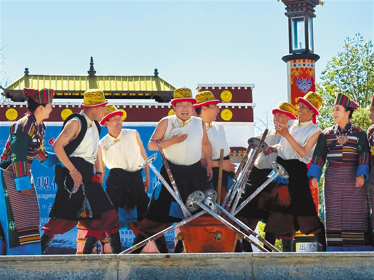 2008年,扎扎服飾被正式列入國(guó)家級(jí)非物質(zhì)文化遺產(chǎn)名錄。措美縣投資建立的扎扎服飾傳習(xí)所于2015年正式運(yùn)營(yíng)。至此,這門老手藝有了“大本營(yíng)”,還成了村里增收的“金疙瘩”。如今,扎扎服飾不只是村里婦女逢年過節(jié)的盛裝,更是吸引游客了解扎雜村的招牌。措美縣還以扎扎服飾的傳說為原型,創(chuàng)作歌舞劇《文成公主草原情》《扎扎情緣》,制作傳承保護(hù)影像,讓這項(xiàng)高原上的獨(dú)特技藝與文化久久流傳。