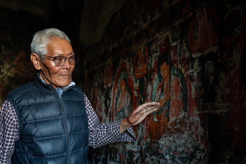 仁增旺扎巡查各個石窟,這是他多年來的習(xí)慣(2023年5月26日攝)。