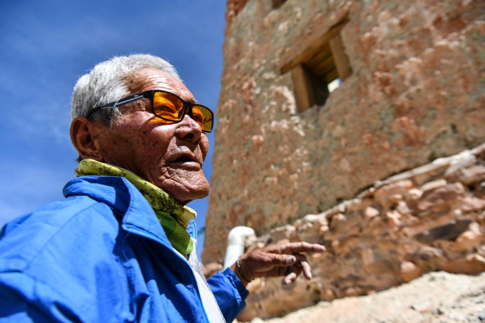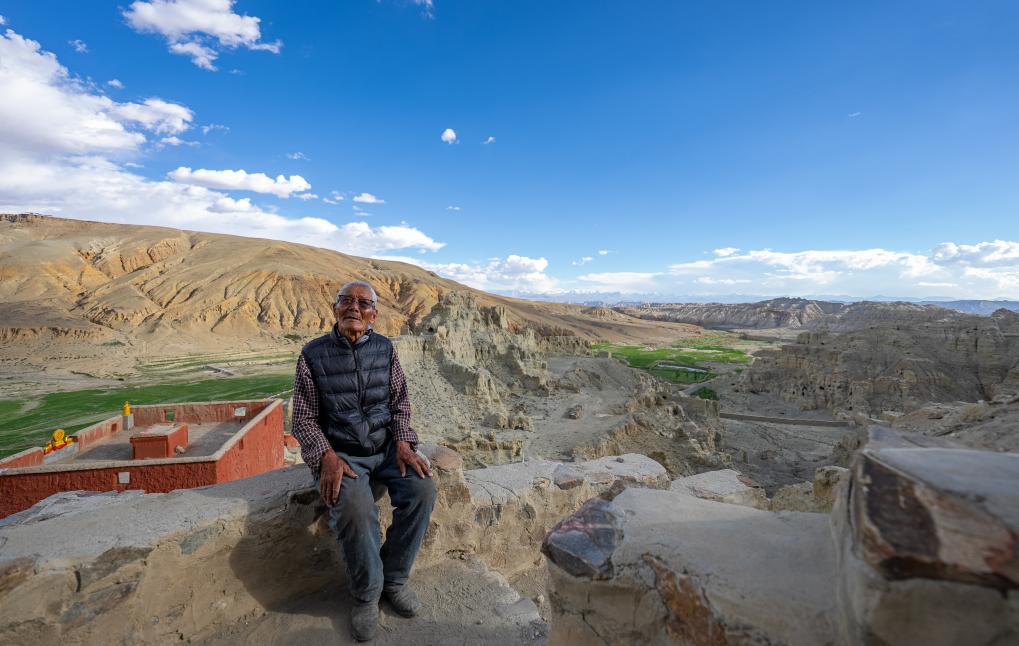 今年77歲的仁增旺扎家住西藏阿里地區(qū)札達(dá)縣東嘎村皮央組。他的家與宏偉壯觀的皮央石窟僅咫尺之遙,民居依偎在高聳的石窟群之下,形成了強烈的視覺落差。皮央石窟群與兩公里外的東嘎扎西曲林寺遺址一起組成了西藏最大的佛教石窟遺址——皮央和東嘎石窟遺址。