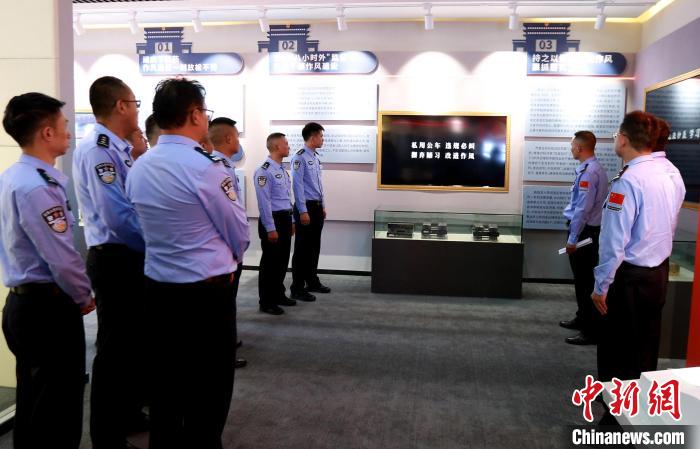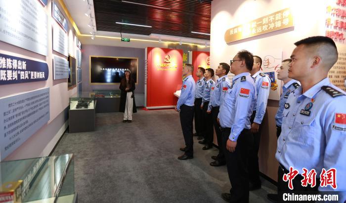 圖為參觀民警正在認真聆聽講解員解說。肖富貴 攝