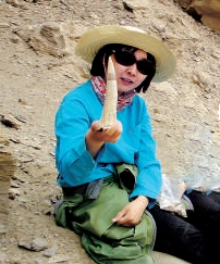 2012年札達(dá)盆地古麟化石出土?xí)r的場(chǎng)景,科考隊(duì)員舉著一個(gè)古麟的角。李強(qiáng)/攝