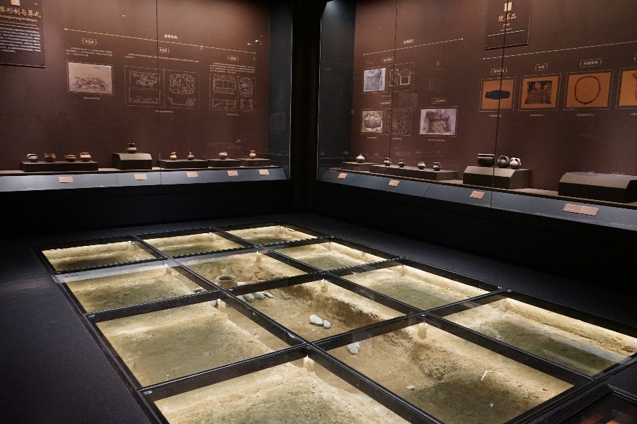 曲踏墓地目前共發(fā)現(xiàn)洞式墓葬8座,復(fù)原展示的即3號(hào)墓葬,坑深4.7米,坑口長(zhǎng)2.3米,寬0.7米。在墓坑?xùn)|端填土表面發(fā)現(xiàn)石頭堆砌的簡(jiǎn)易祭臺(tái),內(nèi)放一個(gè)帶流陶罐,陶罐周邊散落一些羊骨,為一處祭祀墓主人的遺跡?!翱吹竭@樣的復(fù)原展示,讓我對(duì)考古發(fā)掘和歷史文化有了更直觀、科學(xué)的認(rèn)識(shí)?!币晃徽趨⒂^的觀眾表示。