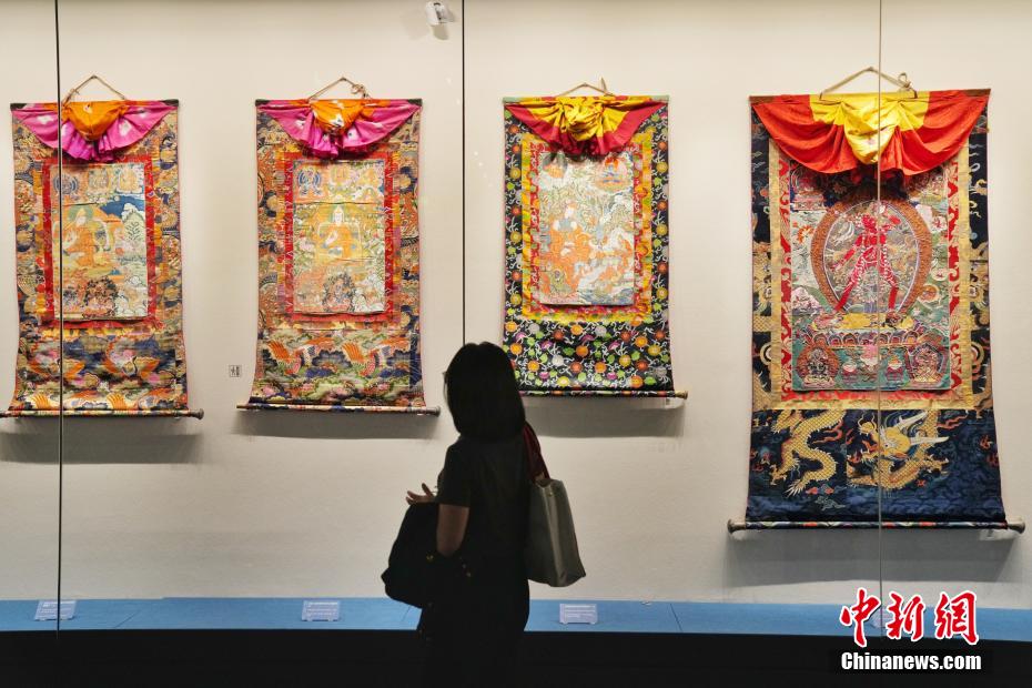 7月15日,在位于西藏拉薩的西藏博物館,觀眾品鑒唐卡藝術(shù)。據(jù)了解,西藏博物館設有基本陳列《雪域長歌—西藏歷史文化展》《離太陽最近的人—西藏民俗文化展》,充分展示西藏地區(qū)歷史發(fā)展進程與文化面貌。中新社記者 張祥毅 攝