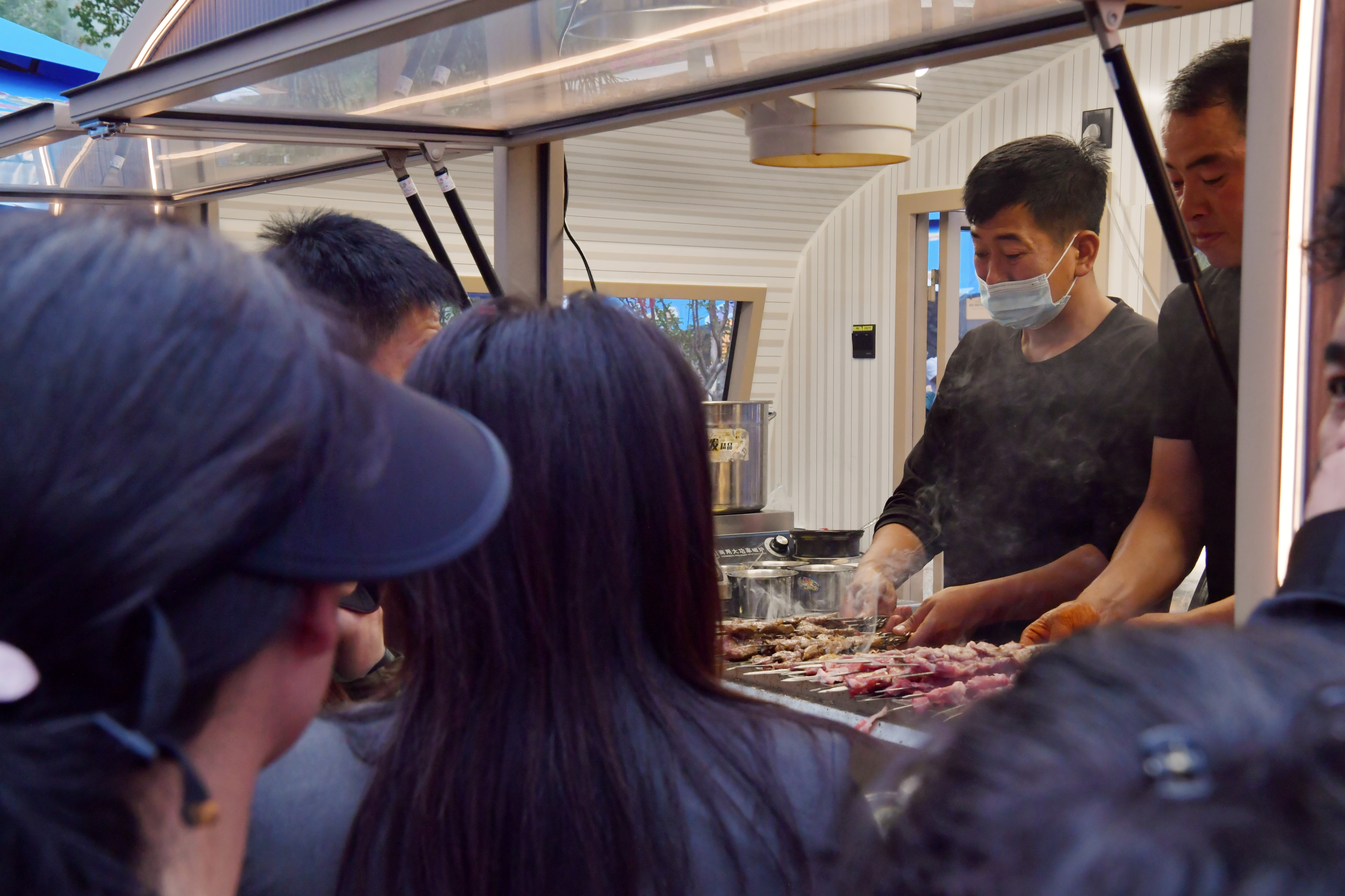 小吃攤販正在制作餐食。記者 索朗旺久 攝