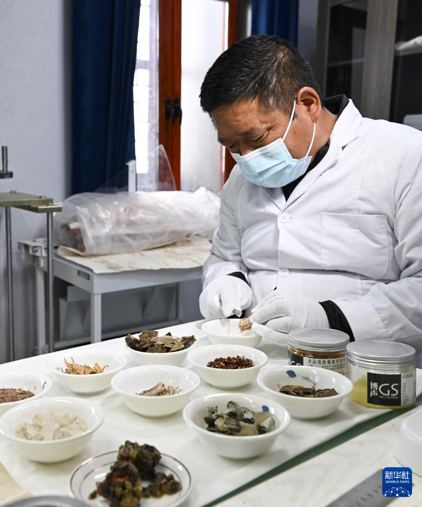 布達拉宮貝葉經實驗性修復小組實驗室工作人員對用于貝葉修復的粘合劑原料進行加工(5月25日攝)。新華社記者 李賀 攝?