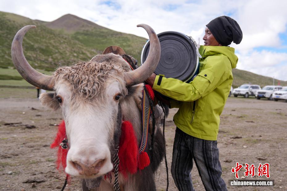 7月21日,在岡仁波齊山腳下,牦牛運(yùn)輸隊(duì)隊(duì)員往牦牛背上綁縛物資,準(zhǔn)備將其運(yùn)輸至轉(zhuǎn)山徒步路線的補(bǔ)給站。岡仁波齊位于西藏阿里地區(qū)普蘭縣境內(nèi),是岡底斯山的主峰,也是藏傳佛教的神山之一,每年吸引眾多信徒前往轉(zhuǎn)山,并衍生出徒步旅行的經(jīng)典路線。每年來自國內(nèi)外的徒步旅行者為當(dāng)?shù)貏?chuàng)造就業(yè)機(jī)會(huì)的同時(shí),也推動(dòng)了文旅產(chǎn)業(yè)的發(fā)展。中新社記者 張祥毅 攝