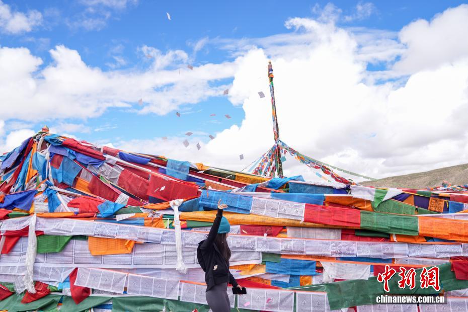 7月21日,游客在岡仁波齊山腳下的經(jīng)幡廣場(chǎng)打卡拍照。岡仁波齊位于西藏阿里地區(qū)普蘭縣境內(nèi),是岡底斯山的主峰,也是藏傳佛教的神山之一,每年吸引眾多信徒前往轉(zhuǎn)山,并衍生出徒步旅行的經(jīng)典路線。每年來自國內(nèi)外的徒步旅行者為當(dāng)?shù)貏?chuàng)造就業(yè)機(jī)會(huì)的同時(shí),也推動(dòng)了文旅產(chǎn)業(yè)的發(fā)展。中新社記者 張祥毅 攝